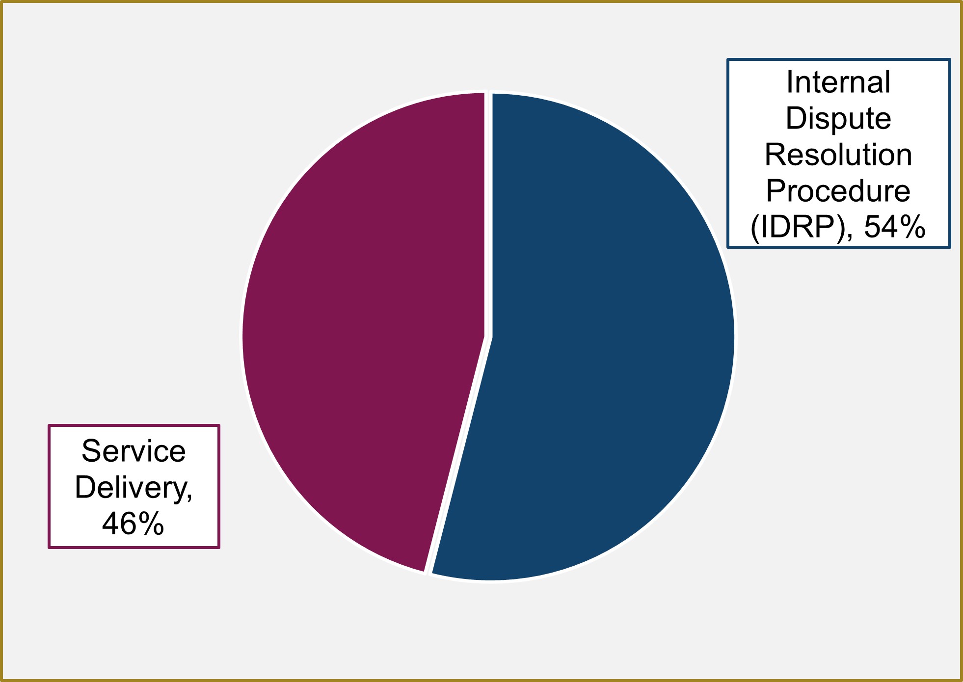- 54% of all complaints were related to Internal Dispute Resolution Procedure.